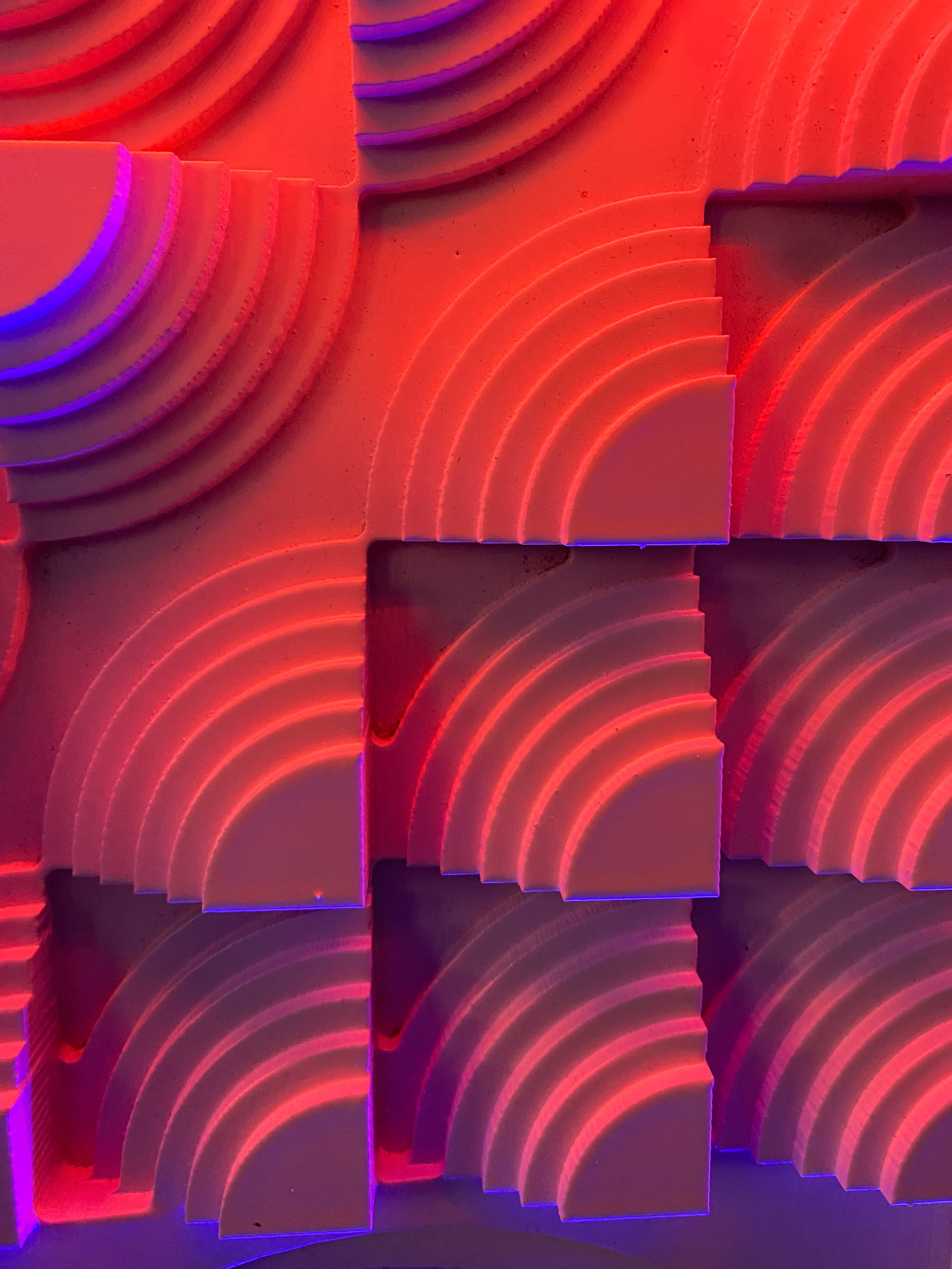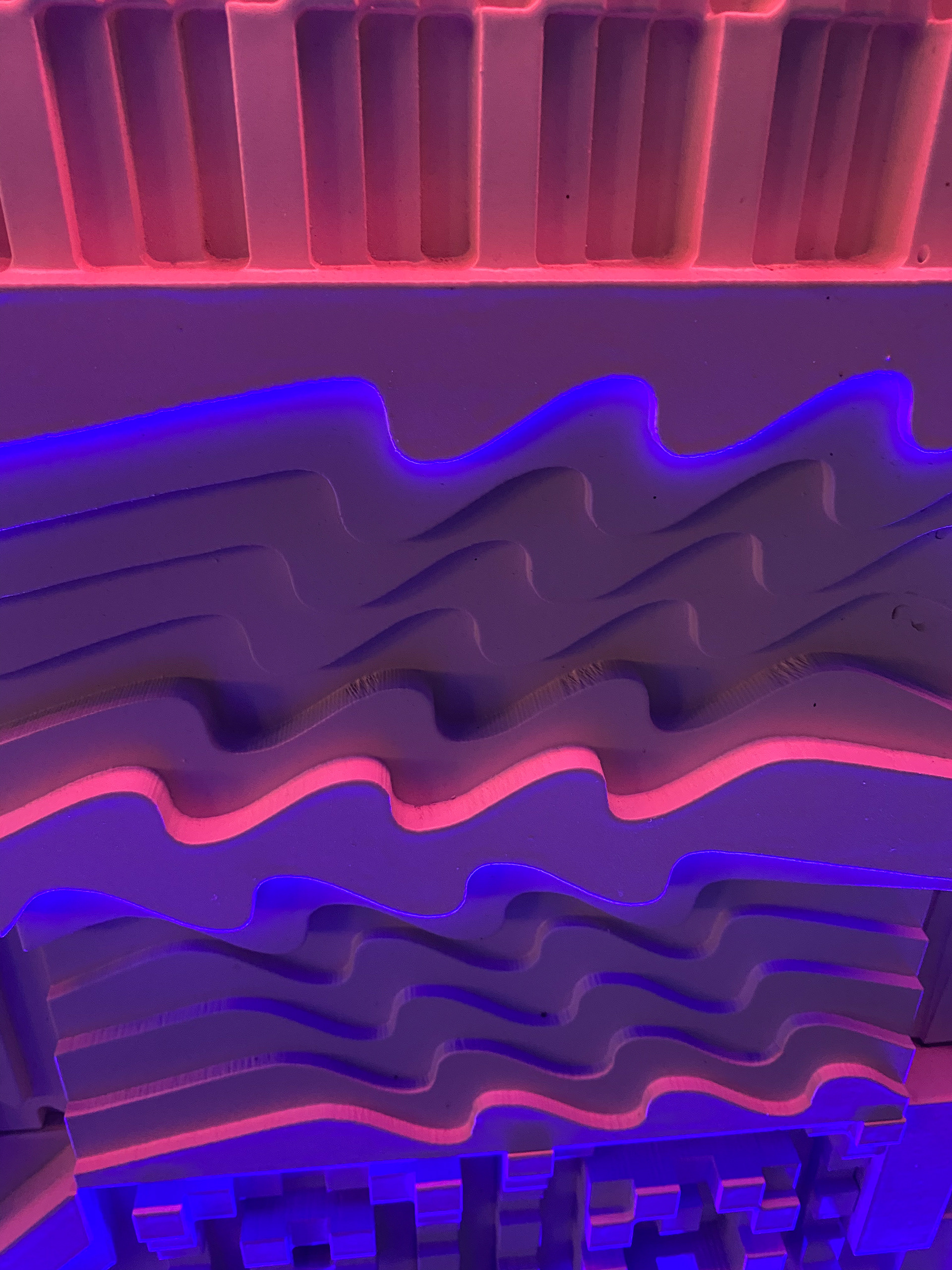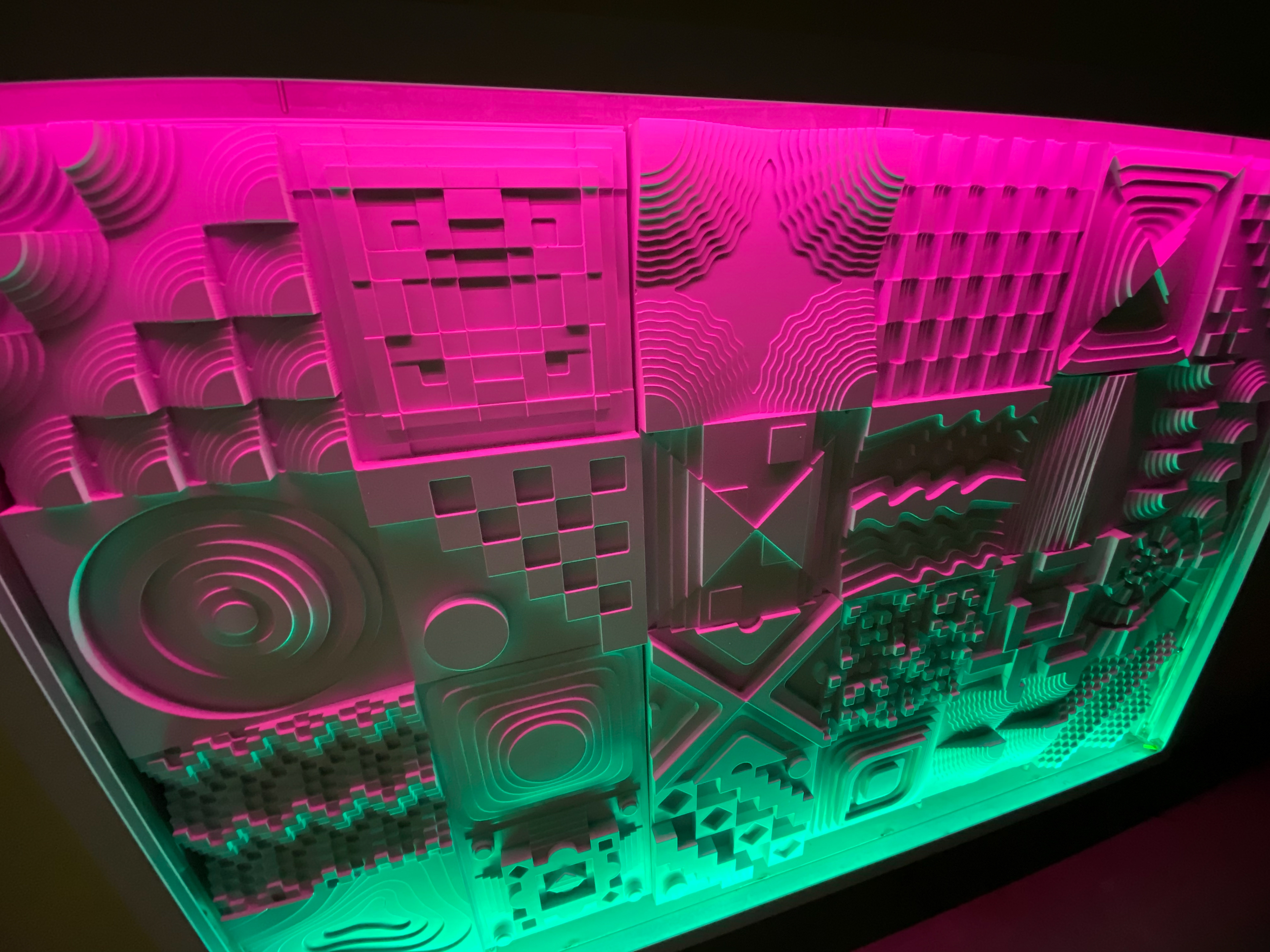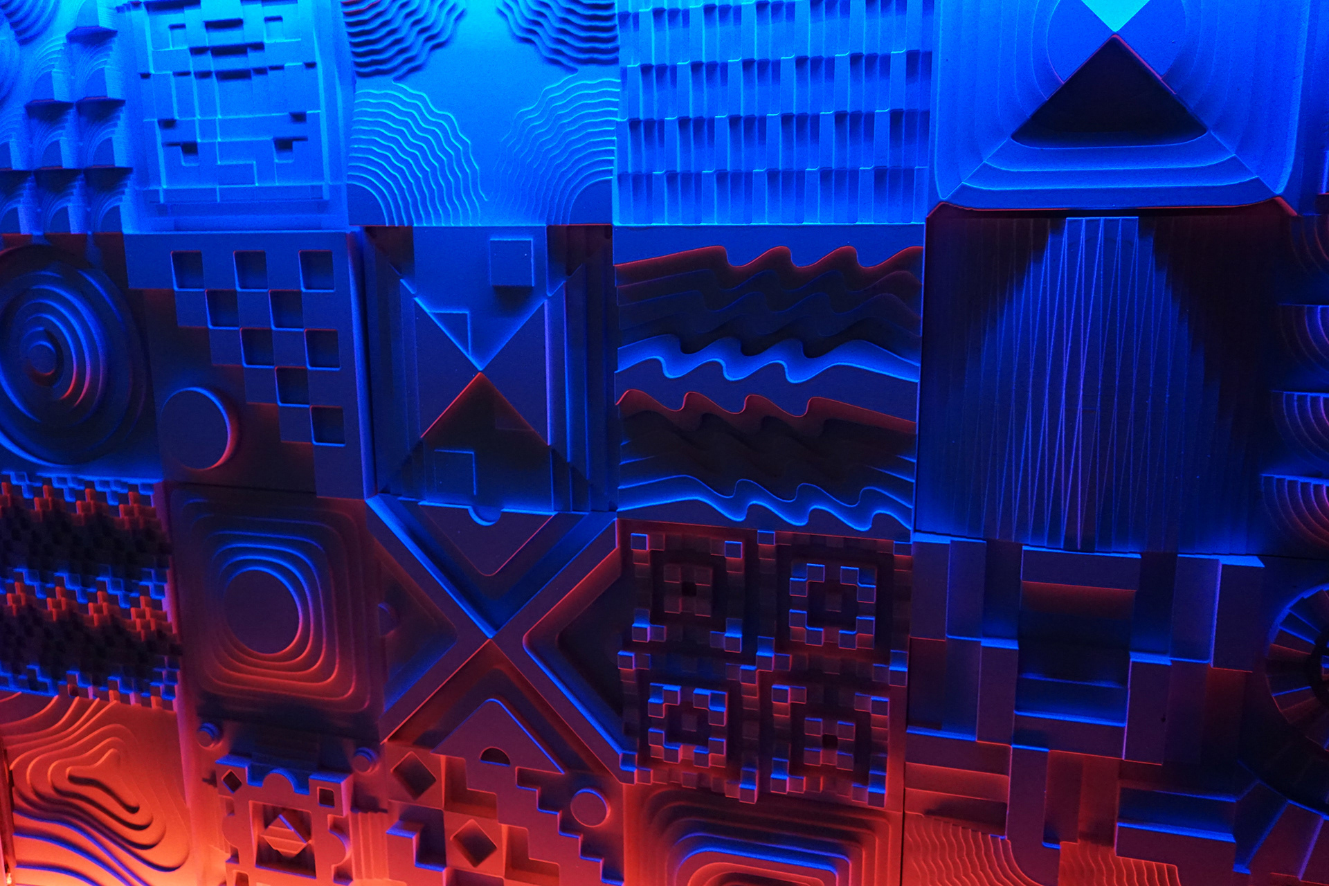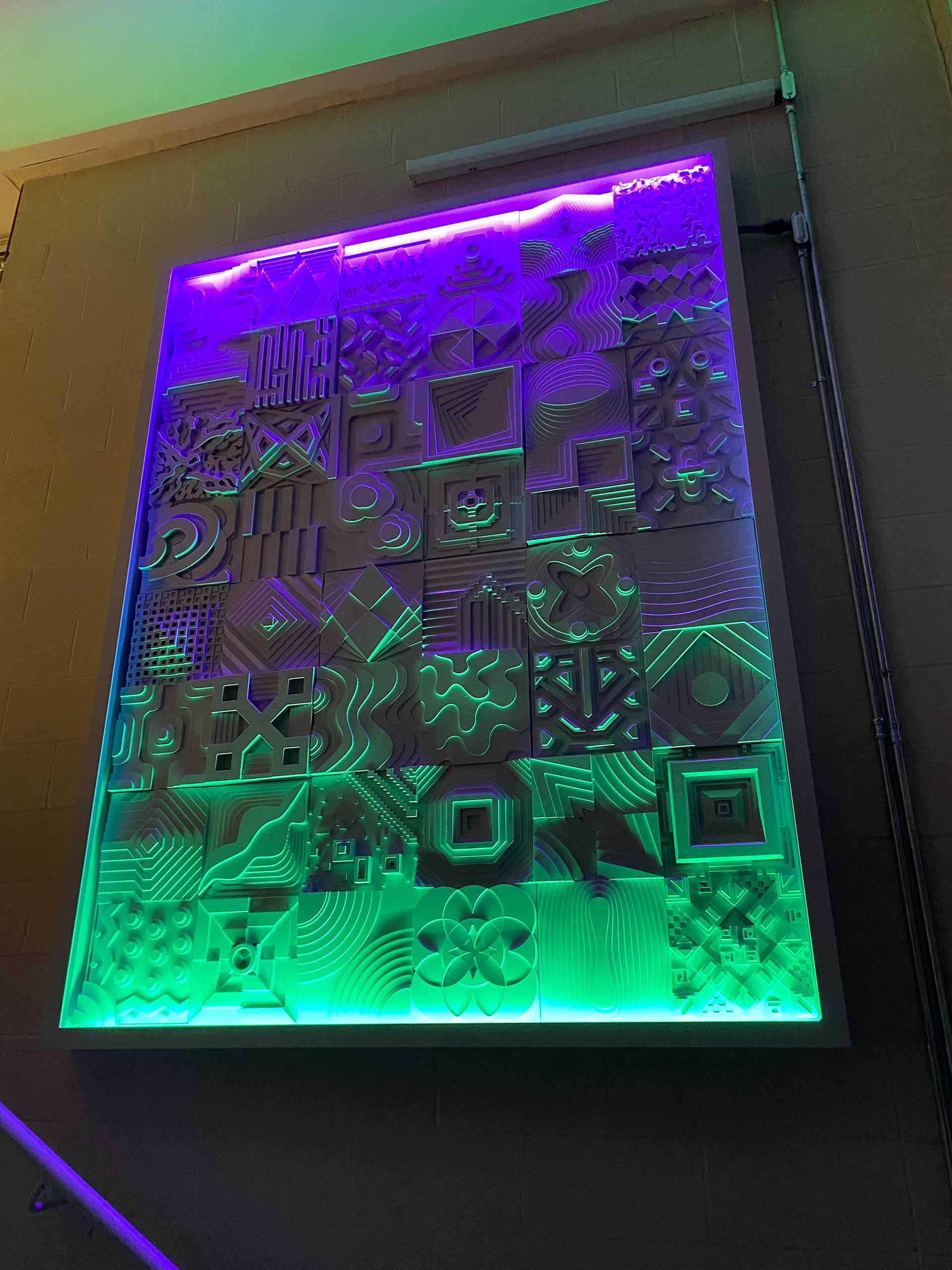 Media: High Density Urethane Foam, Aluminum, LEDs, User interface. Location: Trades District Garage, Bloomington, Indiana