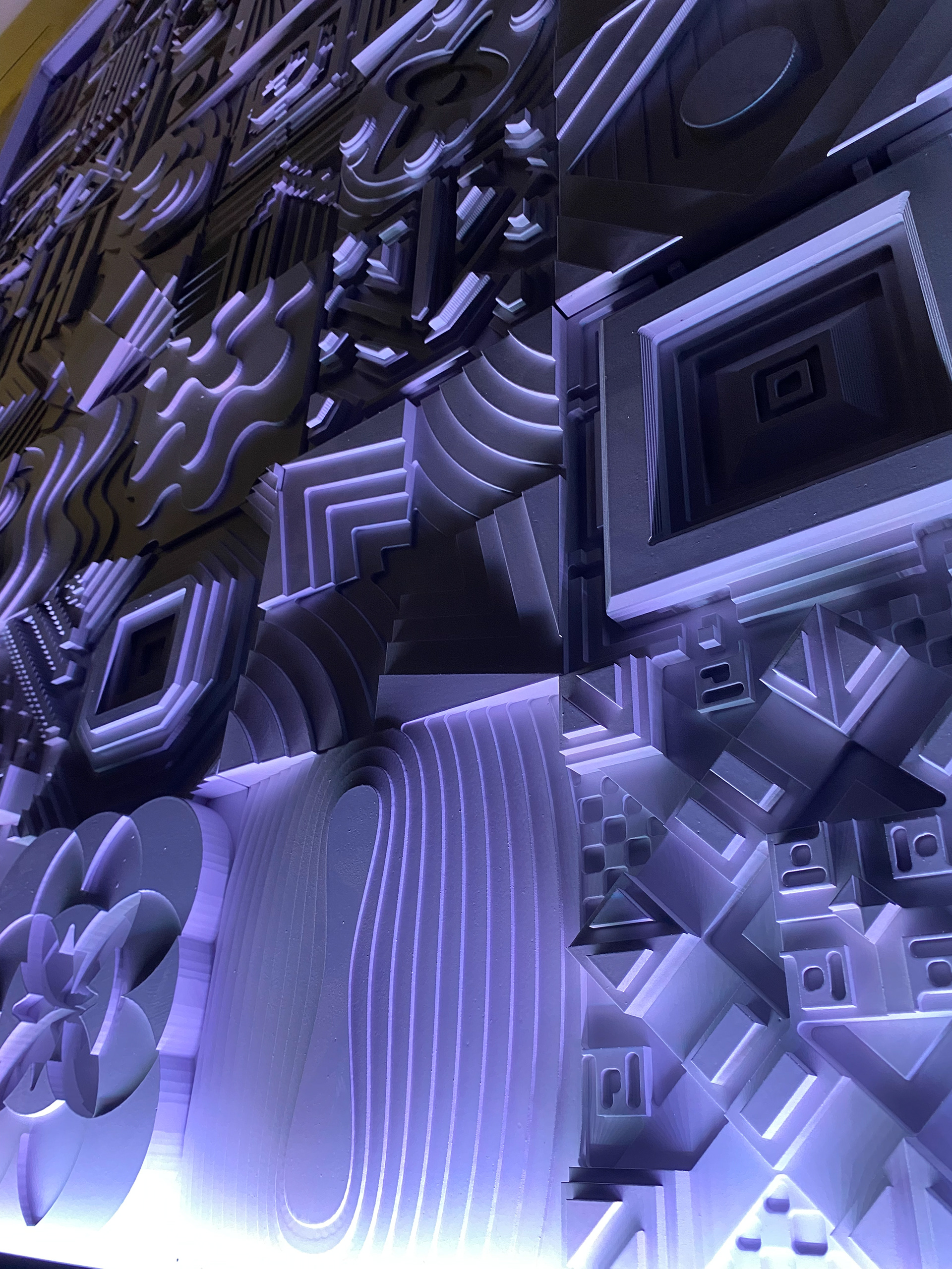The experience of every individual is unique. I use this artwork to represent the diversity and individuality within our community. There are a total of 216 unique designs and all were created in collaboration with different members of the community through a series of public design workshops in 2021. The workshop events took place at Banneker Community Center, The Mill, Trades District Garage, the Latino Cultural Center at Purdue University, virtually, and through an open-submission platform online.