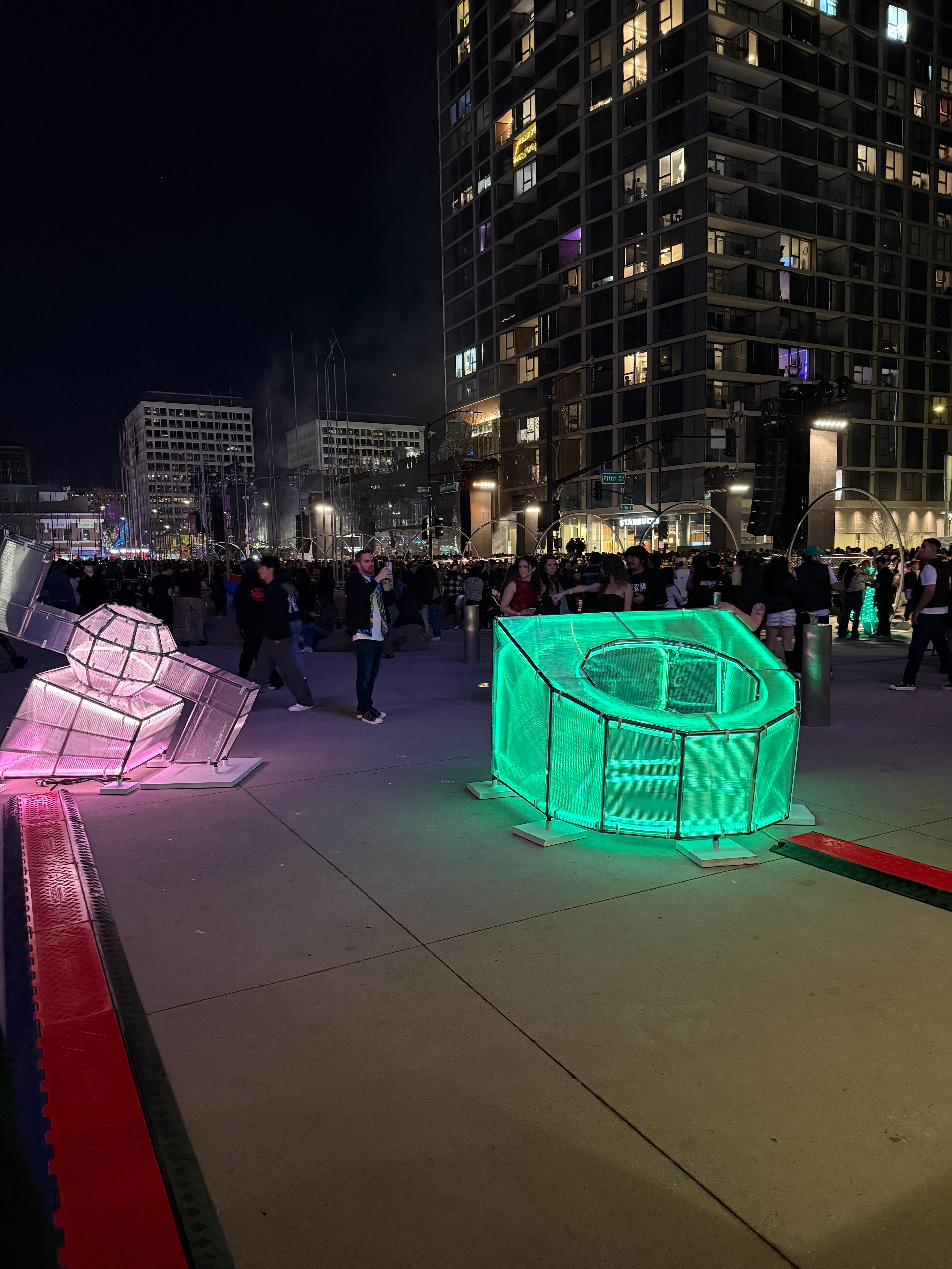 Premiered during the SJ26 block party alongside performances by Kehlani and Dom Dolla, the sculptures activate the plaza as a luminous gathering space that invites visitors to move, celebrate, and connect. Produced at the SJSU Foundry, the works embody service learning, experimentation, and collective craft, demonstrating how educational spaces can shape the visual identity and cultural life of the city.